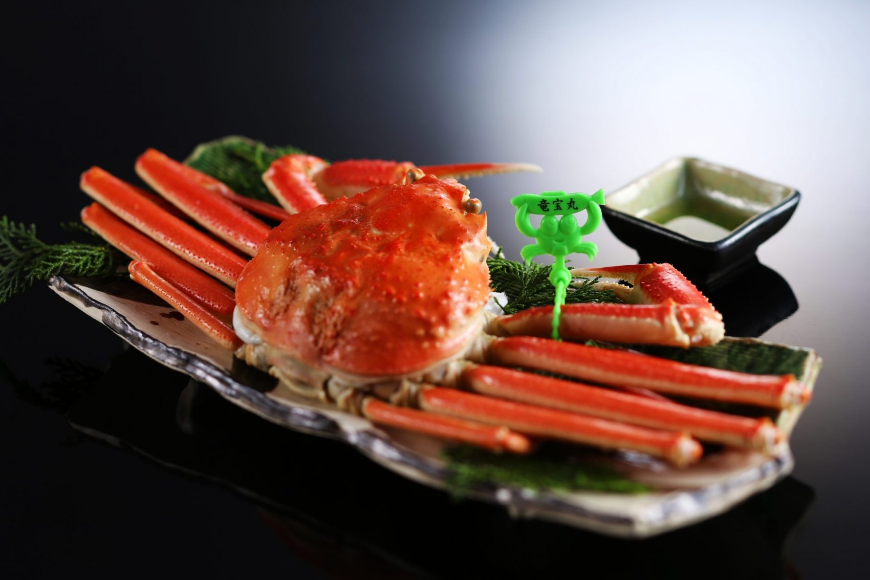 こちらのプランの茹でがには、地元産の証であるタグ付きの松葉がにを使用。茹でがに以外は、料理長が確かな目利きで選び抜いたズワイガニを使用しています。