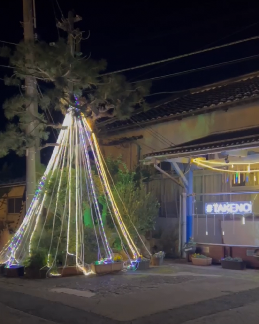 竹野駅のイルミネーションを見ながら、温かいぜんざいや甘酒でお楽しみください☺️