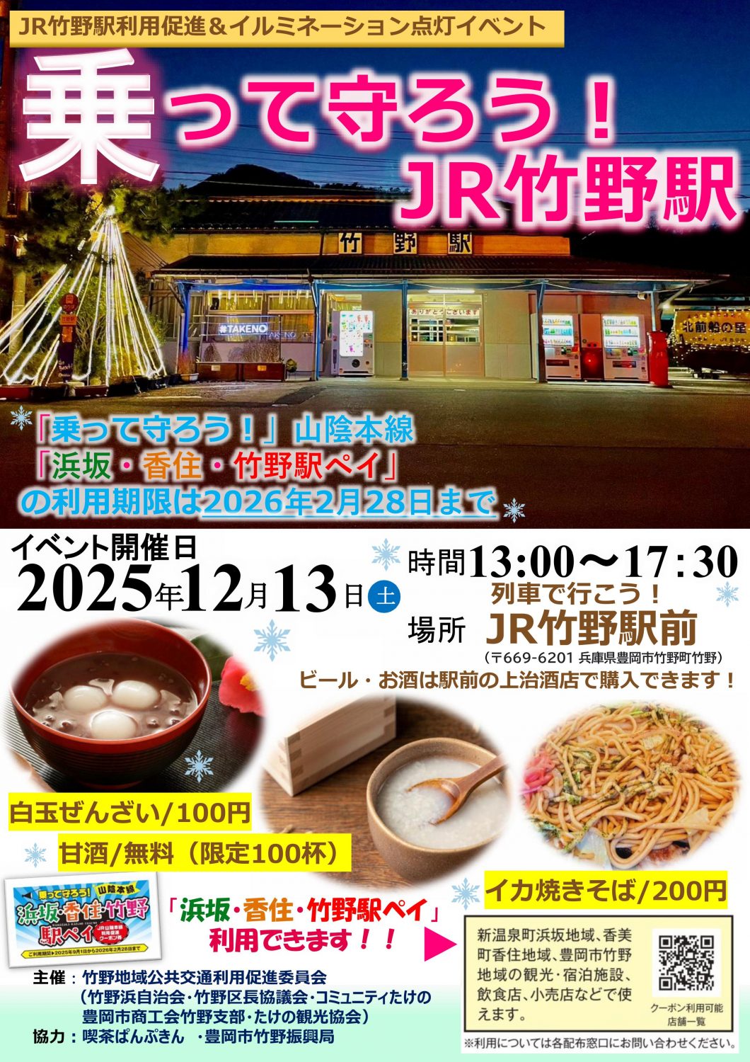 🗓 日時:2025年12月13日(土) 13:00〜17:30 📍 場所:JR竹野駅前