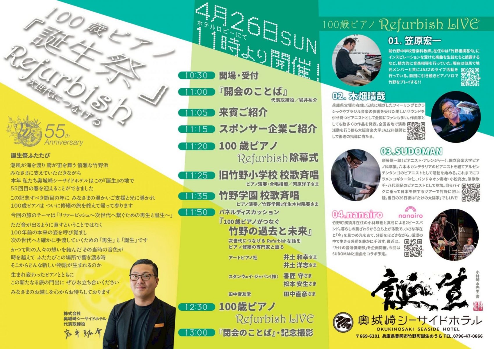 当日は、ピアノのお披露目(除幕式)をはじめ、修繕秘話に迫るパネルディスカッションやピアノライブなどを予定しております♪